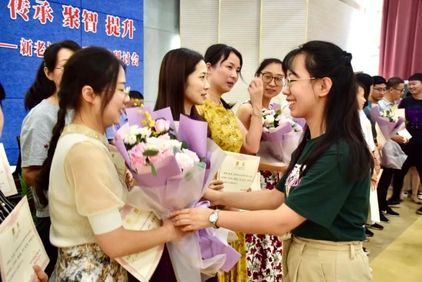 为了充分发挥骨干教师的“传、帮、带”作用,提高青年教师的教育教学水平,建设一支高品质师资队伍,9月11日中午,雨花台中学初中部举行了第七届青蓝工程(2020-2023年)结对仪式暨第六届青蓝工程(2019-2021年)总结交流活动。孙进校长,沈丽副校长,工会曹晓旻主席,课程教学处谢天主任、学生工作处路玲主任、教师发展处栾娟主任及结对教师40余人参加了本次活动。