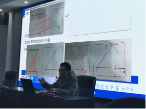 两节展示课后,徐俊副主任给大家带来《初中数学主题式学习单元构建的尝试与思考》的报告,分享了两节展示课的设计理念,徐主任指出,以数学的研究对象划分学习单元,以同一研究路径,同一研究思想为统领,让学生通过这样的学习,从而对几何学习初步形成结构化认识。作一个角等于已知角的教学设计充分体现“以学定教,顺学而教,多学少教”的指导思想,并分享了带领备课组老师一同磨课的心得体会,徐主任的精彩讲座给在场教师带来很多教学思考,引起了与会的老师的一致共鸣,对今后的教学具有巨大的促进作用。