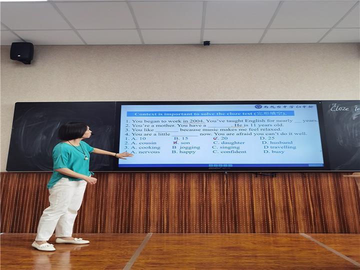 首先,雨花台中学的王群丽老师带来了一堂精彩的完形填空中考复习课。王老师从where和how两个关键词出发,详细解释了在哪里找关键词以及怎么找关键词的问题,整堂课逻辑清晰,讲解深入浅出,学生和老师们都受益匪浅。