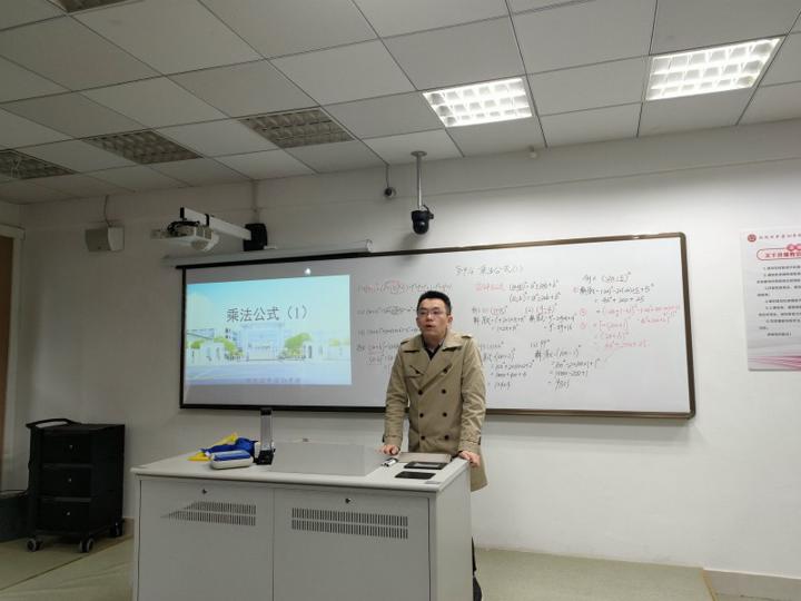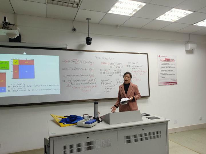 本次活动首先由陈仕敏老师开设了一节研究课《9.4 乘法公式(1)》,陈老师重点渗透“观察猜想——举例验证——得出结论”这一学习方法。从学生解决熟悉的多乘多法则引入,让学生通过观察、比较和分析,初步感受完全平方公式。有意识地让学生运用已有经验,经历公式的发现过程,让学生在合作与交流中对完全平方公式认识由感性逐步发展到理性,合理地构建知识。学生通过独立思考、小组合作等各种方法自己探索,获得新知,激发学生的学习兴趣。