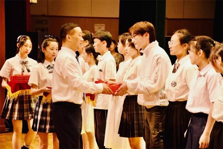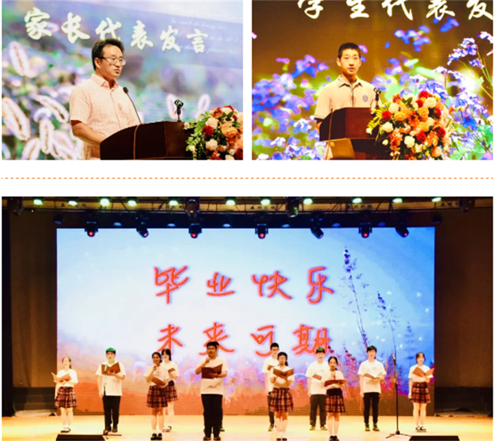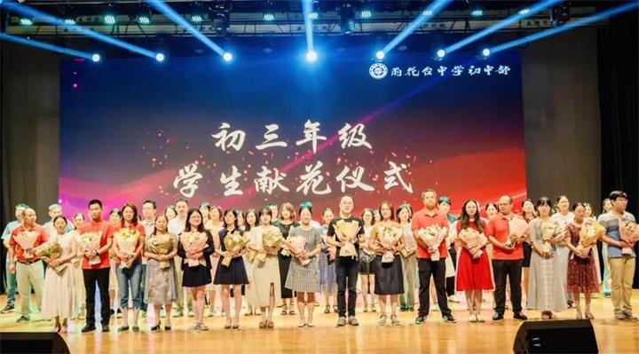感恩过往,展望未来;言语谆谆,动人心扉。三年的陪伴,老师们在孩子们身上倾注无限的真情。一千多个日子,他们用智慧和汗水引领着孩子们一路前行。毕业典礼最后,初三年级全体老师在热烈的掌声中走上舞台,同学们为老师们献上鲜花送上诚挚的感谢和祝福。各备课组教师代表为同学们送上临别赠言,愿他们前程似锦、未来可期。