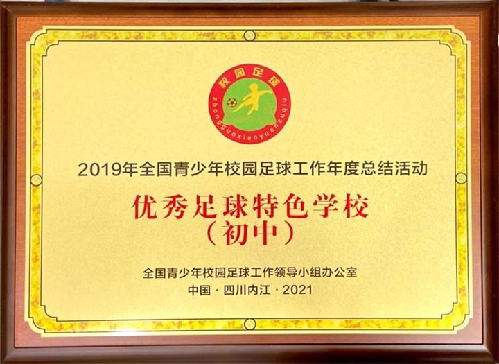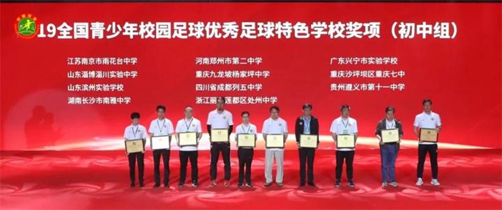 近日,2019、2020年全国青少年校园足球工作年度总结活动在四川省内江市威远县举行,入选2019年、2020年为校园足球作出突出贡献的获奖单位及个人代表走过专属“绿茵”毯,踏入校园足球的荣誉殿堂来领取这份属于他们的奖项。在本次评选中,雨花台中学初中部被评为2019全国青少年校园足球优秀足球特色学校。
