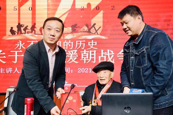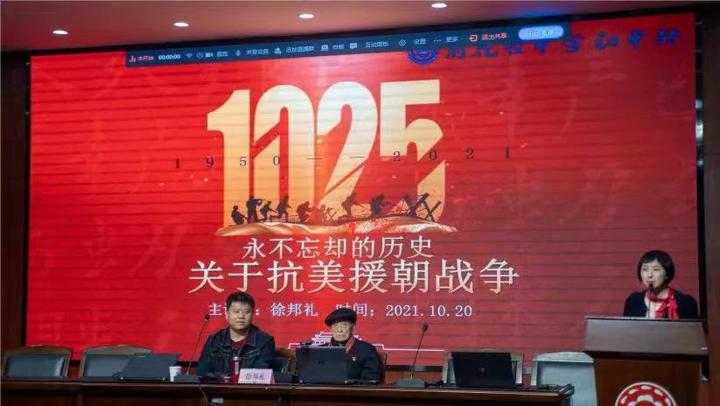 金秋十月,丹桂飘香。在我中国人民志愿军赴朝参战纪念日到来之际,96岁的志愿军老兵,原志愿军第9兵团20军58师127团2营6连副指导员徐邦礼老人,冒着绵绵细雨,在家人的陪同下来到我校,为我校初一学生带来了一场为了理想和信仰的爱国主义讲座。