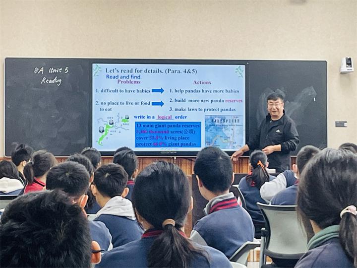 首先是初中英语的课堂展示,活动采用同课异构的形式,课题是《8A Unit5 Reading》。江苏省英语特级教师、南京雨花台中学马辉老师与南京市学科带头人、岱山东路中学的徐文标老师分别带来了精彩的课堂教学展示。马老师充分挖掘教材资源,从多维度引导学生获取知识。通过问题层层递进地启发学生思考,充分体现了语篇意识。