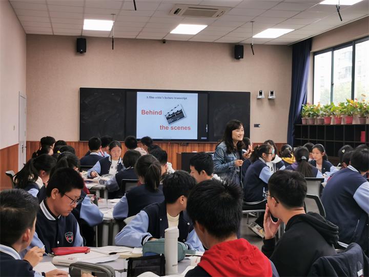 随后南京市优秀青年教师、雨花台中学高中部的许荟老师执教了《M2 Unit1 Reading》。许荟老师凭借扎实的教学功底,环环相扣的教学设计,引导学生注重文本中举例和暗喻等写作手法的运用,培养他们的批判性思维,让他们关注银幕背后更多人的付出。