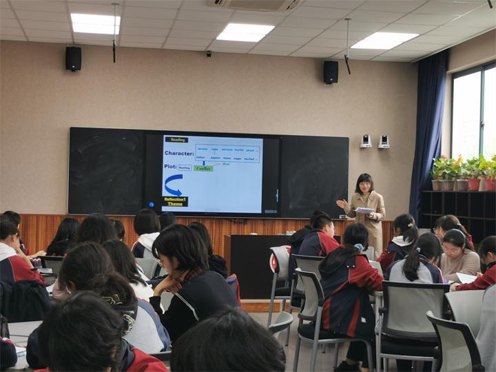 接着,南京市优秀青年教师、板桥中学的邓红燕老师执教了《Communication Writing》 。邓老师对文本进行了深度挖掘,在此基础上从情节冲突、人物情感、语言表达和故事主题等多个角度带领学生对习作进行分析,是一节有效的读后续写课。