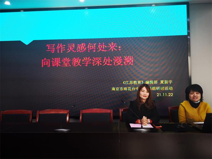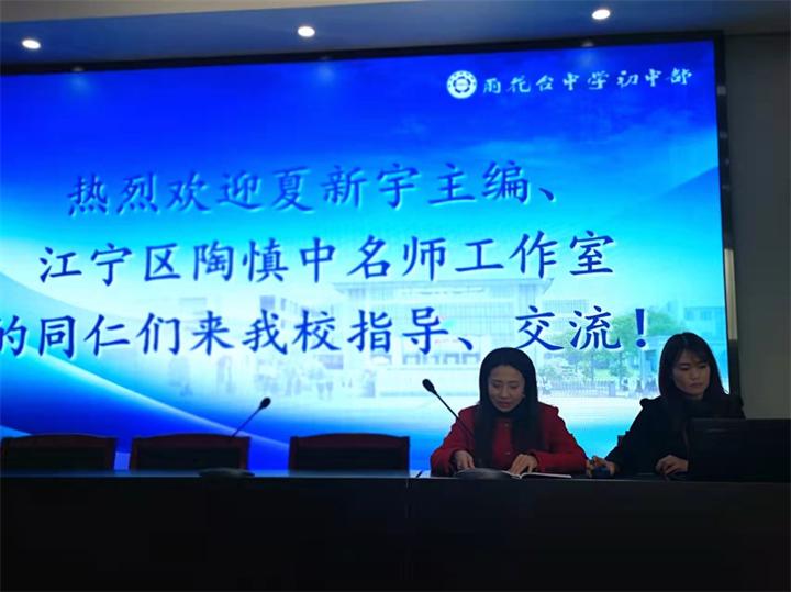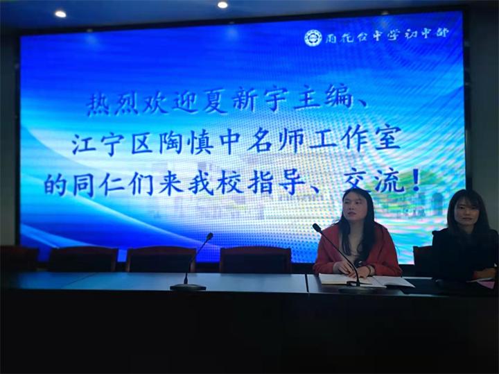 2021年11月22日上午,江宁区初中英语陶慎中名师工作室和我校英语教研组联合举行了“兴趣导向下提高课堂参与度的写作教学”主题教学研讨活动。活动在我校语文学科交流中心举行,我校英语教研组长刘浏老师主持了会议,《江苏教育》夏新宇副主编,江宁区陶慎中名师工作室的老师们以及我校全体英语老师参与了此次教研活动。