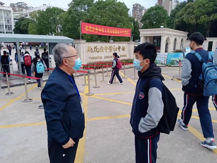 2021年10月18日早晨,雨花台区人民政府教育督导室周宁和张江琳两位督学到我校进行“五项管理”专项督导。首先,两位督学在学校门口对学生和家长就“五项管理”进行了访谈,切实了解我校学生在手机、睡眠、读物、作业、体质管理方面的一些做法和建议。
