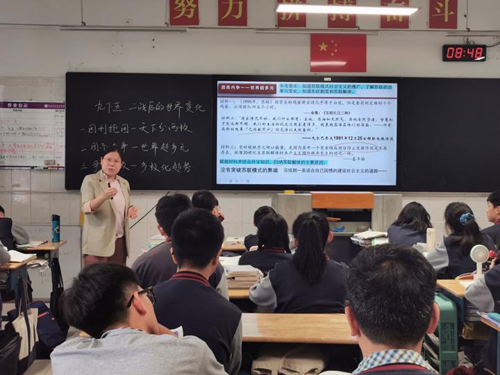 我校初中部孙洁老师和高中部诸雯莉老师分别在初高中开设了《二战后的世界变化》和《社会主义国家的发展与变化》的研究课。孙洁老师以丘吉尔这一历史人物融入初三一轮复习中,展示了微观史学下初中历史复习课的新模式。诸雯莉老师以微观经济和社会生活的视角引领学生分析二战后社会主义国家的改革,注重培养学生历史叙事能力。