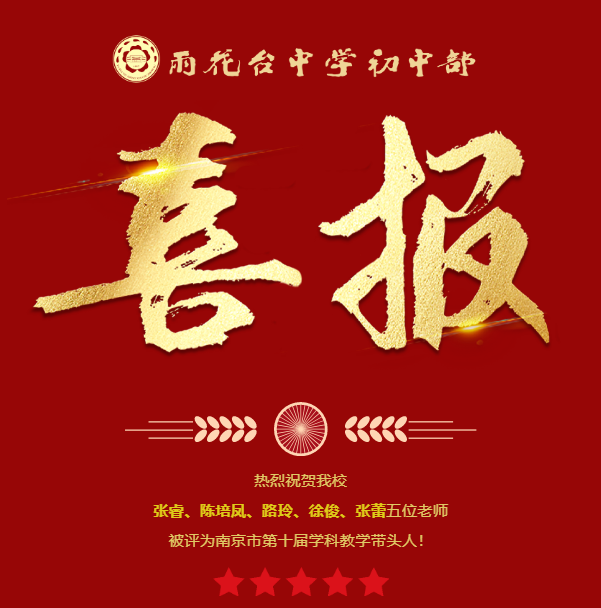 在南京市第十届学科教学带头人评比中,我校物理、德法、数学、生物四门学科五位教师经过区选拔、市笔试、课堂教学考核一系列程序,顺利通过!通过人数在全市遥遥领先,通过率、学科覆盖率在全市名列前茅!