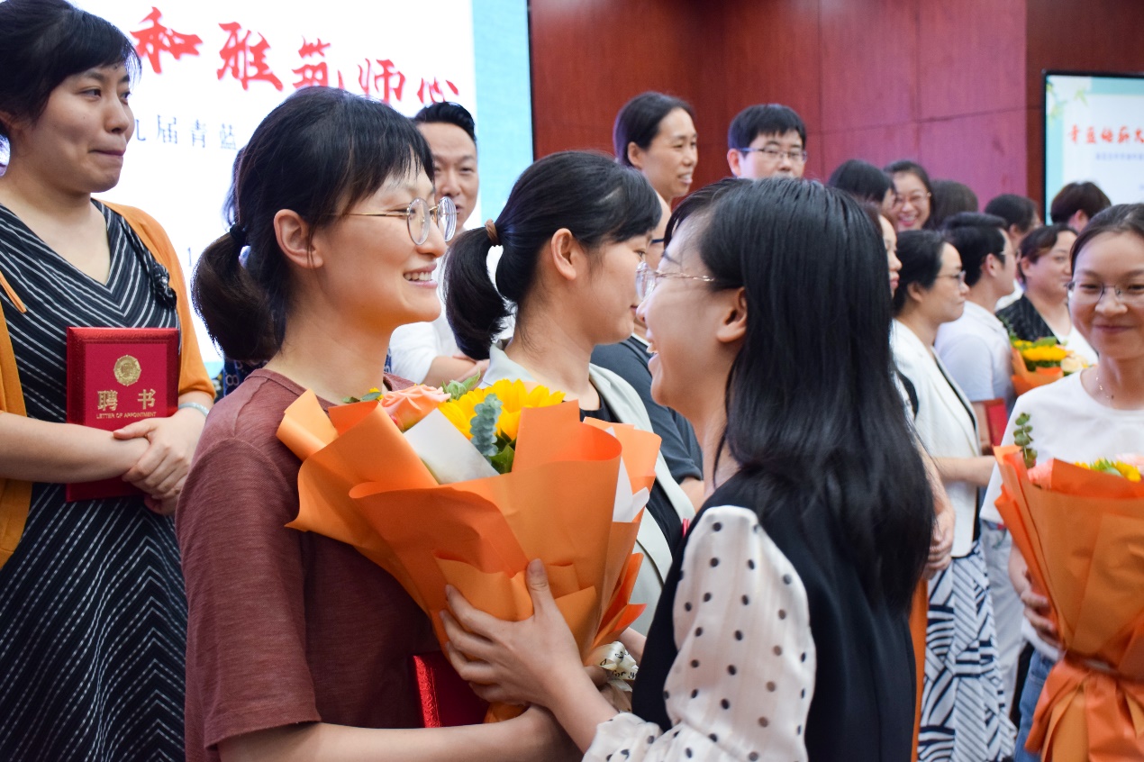 随后,冯志强副校长、栾娟副校长为指导教师颁发了聘书,青年教师向各自的指导教师献上了鲜花,师徒共同合影留念。