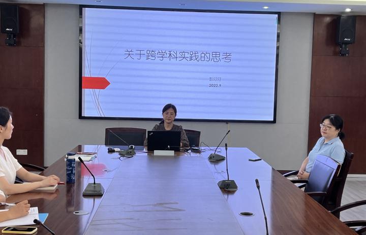 我校生物教研组组长彭汀汀老师也介绍了自己对生物跨学科实践初步思考。她阐述了新课标中相关跨学科实践内容的描述和教学要求,文献学习过程中的一些启发与参考。