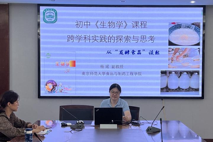 杨瑶副教授针对初中《生物学》课程的跨学科实践,进行了深刻的探索和思考。她从“食品发酵”角度着眼,引导我校生物教师尝试从酒酿的制作、馒头的制作以及酸奶的制作等方面开展生物学跨学科实践探索。