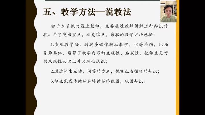 预赛中,规定两位老师以直播的形式,时长15分钟,针对苏教版第十章第二节《血液循环》部分进行说课,组内其他老师观看直播,并在结束后第一时间上交自己对两位参赛教师评价和排名。