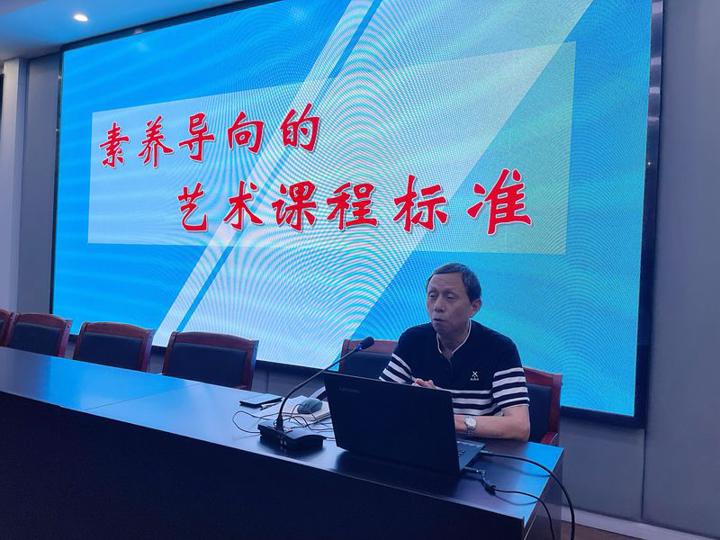活动的第二部分是由江苏省美术特级教师傅幼康老师对两节课进行了点评,他肯定了两位教师的教学,同时提出了建议,鼓励教师充分挖掘教材资源,基于新课标进行一系列化的行动研究,做大单元教学尝试。随后,傅特进行了《素养导向的艺术课程标准》专题讲座,他从新课标的“结构”、“内容”之变到“模块”、“导向”、“方法”、“评价”上新,到“主体”、“观念”、“传承”、“改革”的思,多角度、多维度向大家阐述了新艺术课程标准的背景、理念、变化及思考,并对如何将以美育人的课程理念落实到美术课堂中,提出了指导建议,让老师们对艺术新课标有了更深的认识与感知。