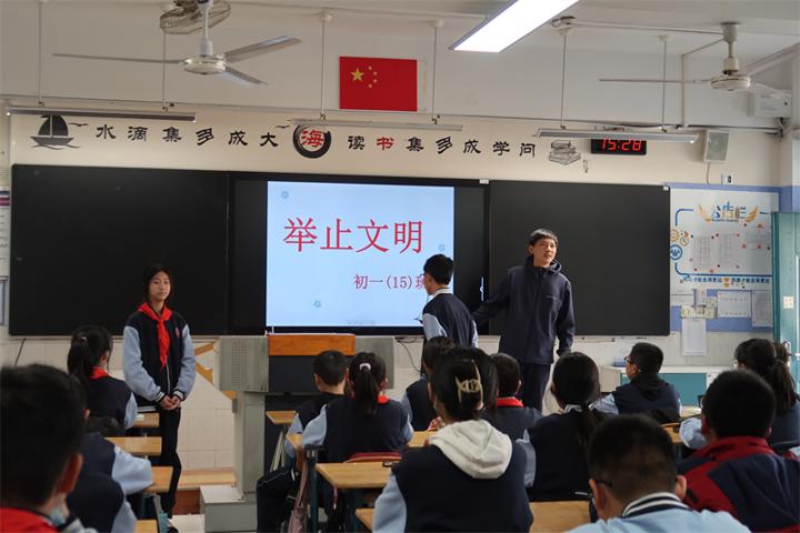 倡导文明新风,构建和雅校园。2022年11月7日下午,雨花台中学初中部初一(15)班开展主题为《举止文明》的主题班会,本次班会课由班主任张明亮老师主持。学生工作处路玲主任、安勇副主任及各位助理班主任进班观摩、指导、学习。