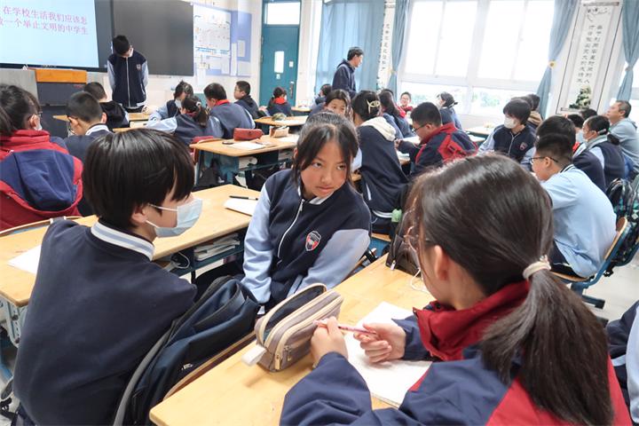 本节班会课通过了解“中学生文明守则”、进行“文明人”自测、分享评析不文明现象等环节展开,在各个环节中,学生们踊跃发言、积极配合,逐步认识到怎样才是一个文明的人、如何做一个成为举止文明的中学生。