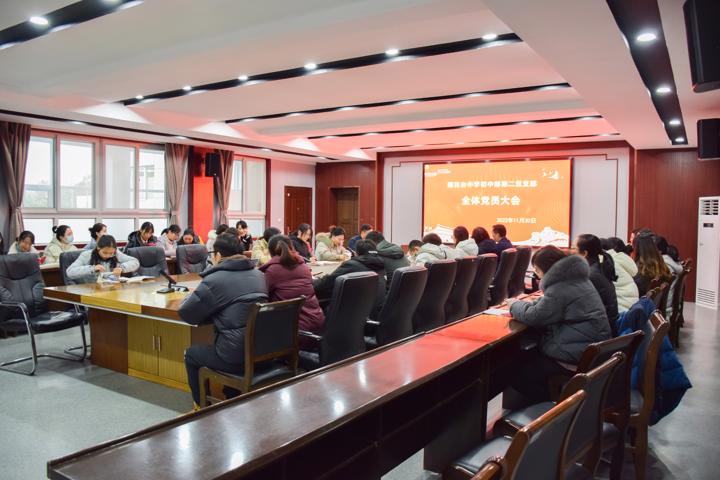 党的二十大是在全党各国各族人民迈上全面建设社会主义现代化国家新征程、向第二个百年奋斗目标进军的关键时期召开的一次重要大会。为全面学习宣传贯彻党的二十大精神, 2022年11月30日下午,雨花台中学初中部第二党支部全体党员同志在学校和雅楼一楼第二会议室召开党员学习大会,全体党员参加,会议由第二党支部书记张国林同志主持。