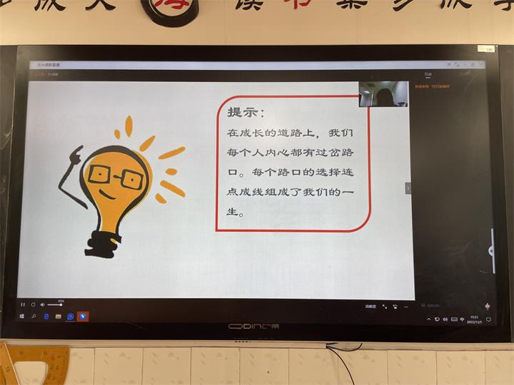 为进一步提高全体师生法律意识,尊崇法治精神,增强法治观念,推进校园法治文化建设,我校初一(15)班于2022年12月5日利用班会课时间开展视频学习活动,本次法制宣传课的主讲人是来自雨花台区人民检察院的汤赵楠检察官,她授课的主题是《以规则照亮明天的路——树立规则意识》。