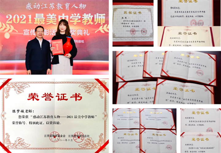 学校获得“全国师德建设示范基地学校”等荣誉称号,一大批教师被评为市、区师德标兵和先进个人。2019年孙进校长被评为市师德标兵,陈培凤、马晓峰、倪丽娟老师被评为区师德先进个人;2021年陈梦媛老师荣获“感动江苏教育人物——2021最美中学教师”;2022年我校语文组荣获南京市教育系统第十五届“师德先进集体”。此外,我校教师长期以来积极主动报名参与支教活动,用实际行动为教育脱贫攻坚贡献了雨花力量。