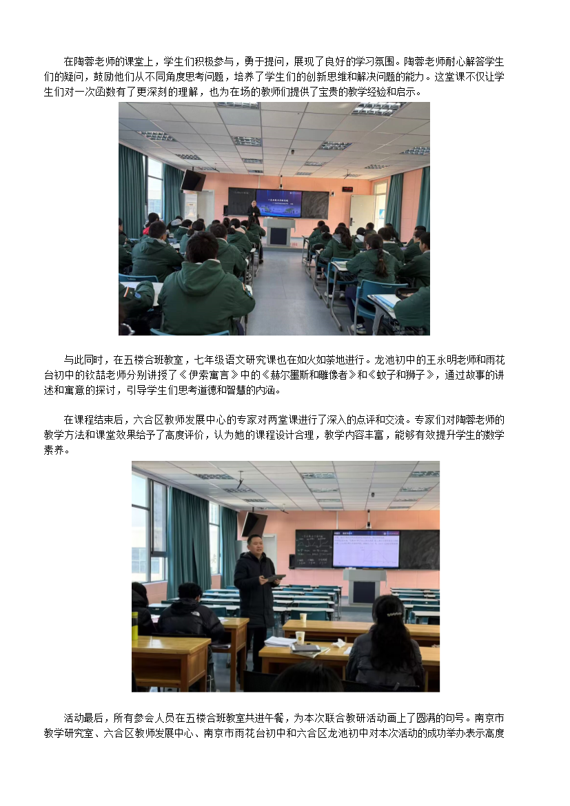 南京市雨花台初中与六合区龙池初中联合教研活动成功举办
