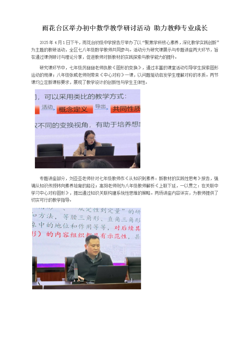 雨花台区举办初中数学教学研讨活动 助力教师专业成长