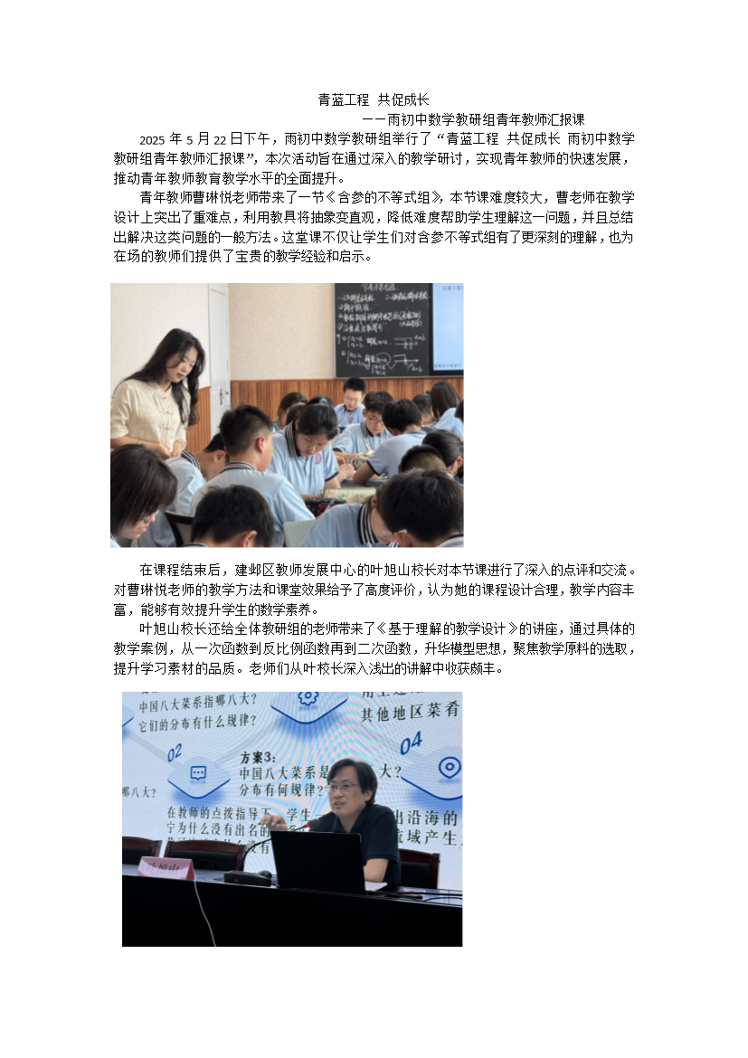 青蓝工程 共促成长——雨初中数学教研组青年教师汇报课