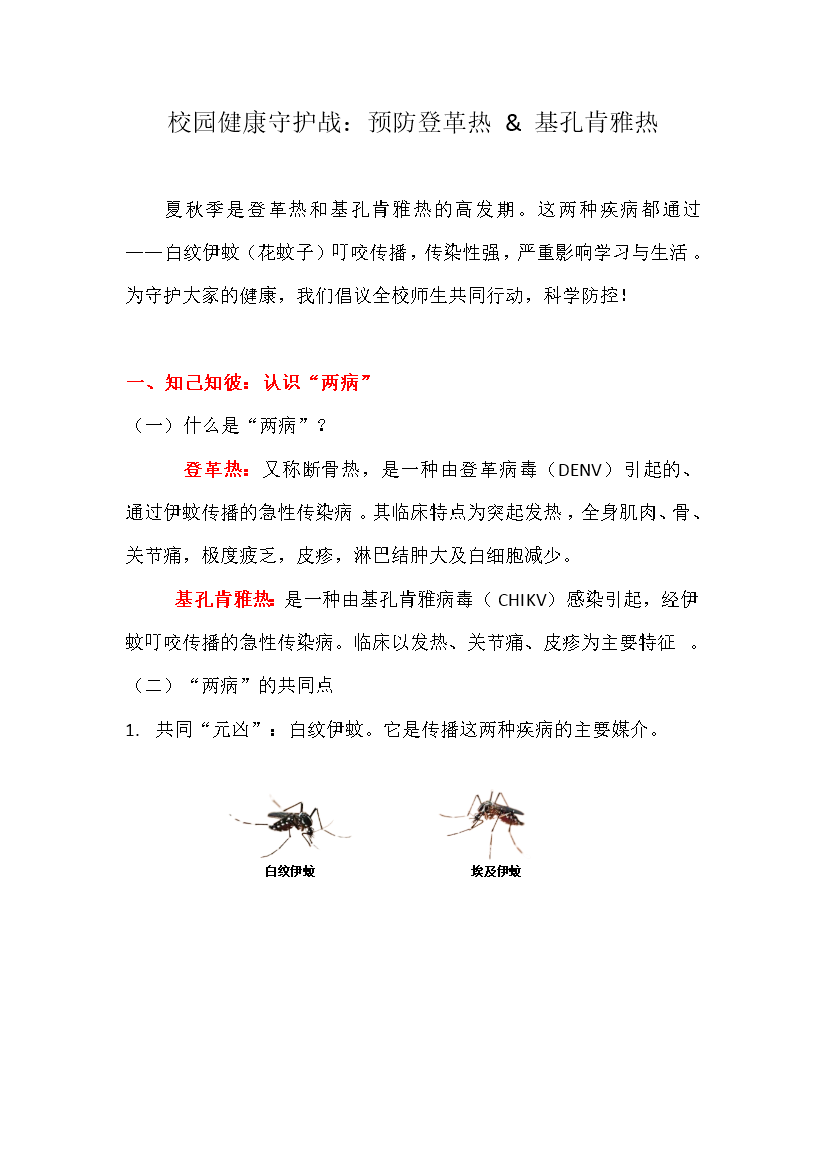 【健康宣教】校园健康守护战:预防登革热 & 基孔肯雅热